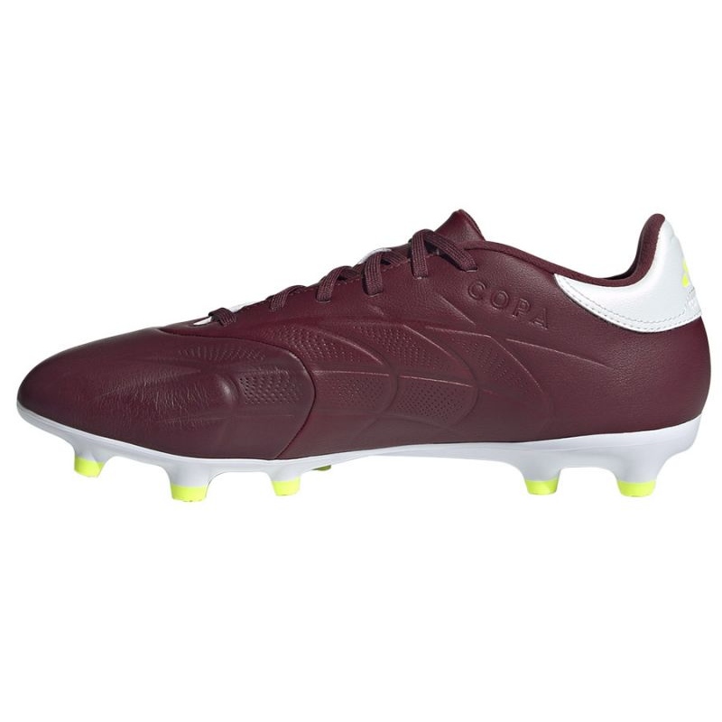 Apresentamos os sapatos de futebol masculino Adidas Copa Pure.2 League FG M em uma cor exclusiva da Borgonha, que é a escolha perfeita para todos os entusiastas do futebol. Criados para tocar na grama natural, esses engarrafamentos oferecem excelente adesão e estabilidade, o que é crucial durante ações dinâmicas em campo.