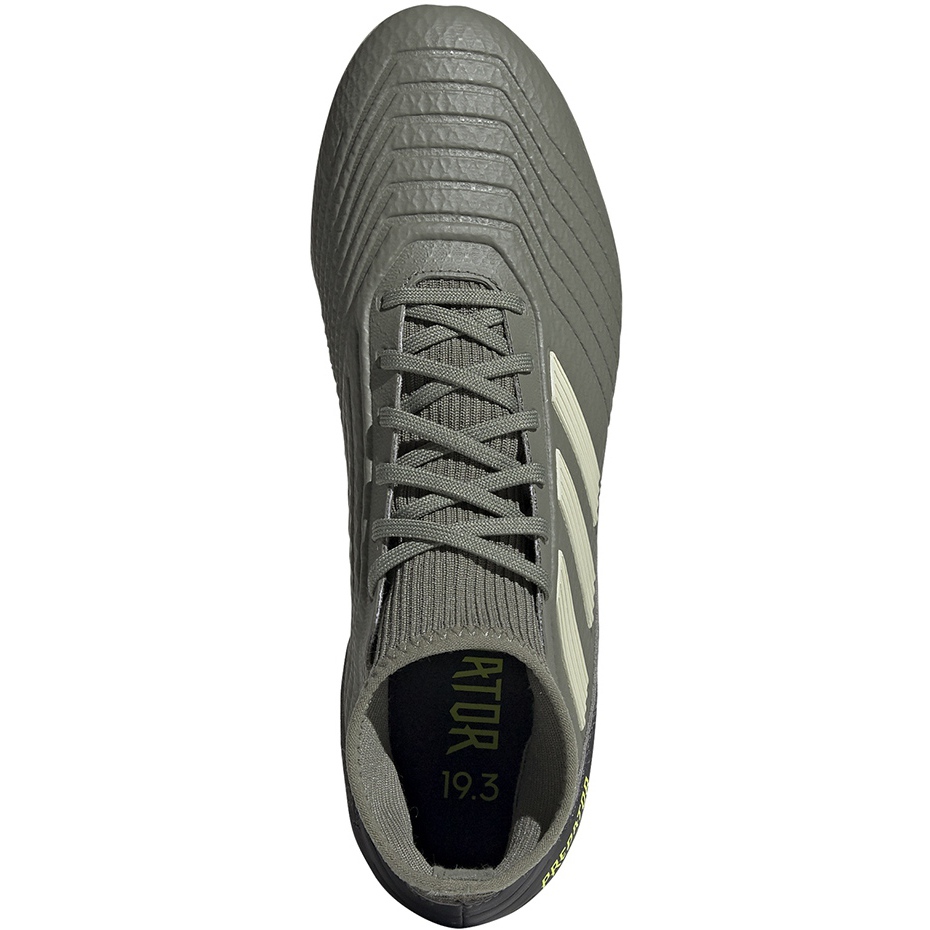 Adidas Predator 19.3 FG EF8208 Sapatos de futebol - Gray, da coleção de pacotes de criptografia. Projetado para jogadores que precisam de algum controle sobre a bola e a estabilidade na grama natural.