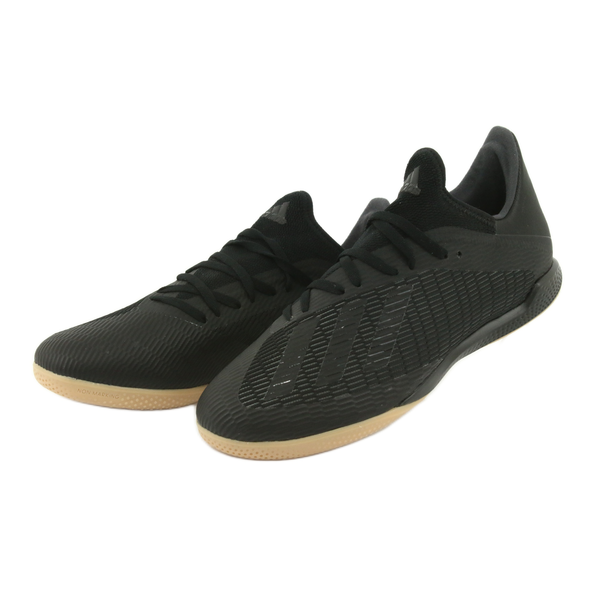 As chuteiras adidas X 19.3 In M F35369 são uma excelente escolha para todos os entusiastas do futebol de salão que procuram conforto e desempenho em campo. Este modelo é dominado por uma elegante cor preta, o que lhes confere um aspecto moderno e desportivo.