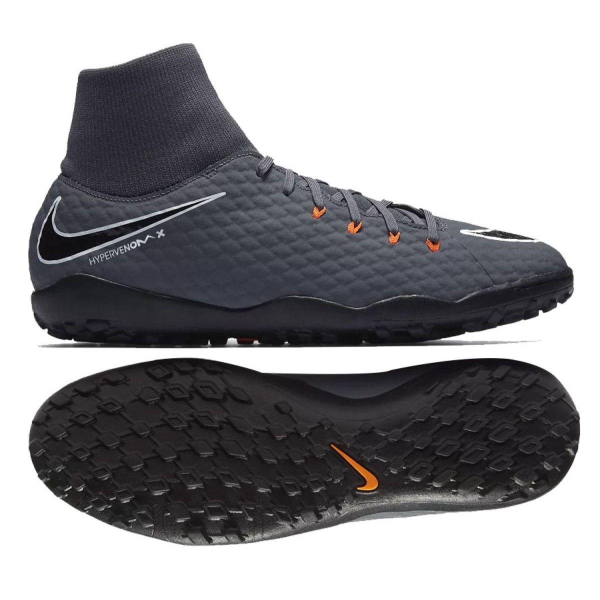 Detalhes: Chuteiras de futebol Nike Hypervenom PhantomX 3 Academy Df Tf M AH7276-081-S cinza cinza