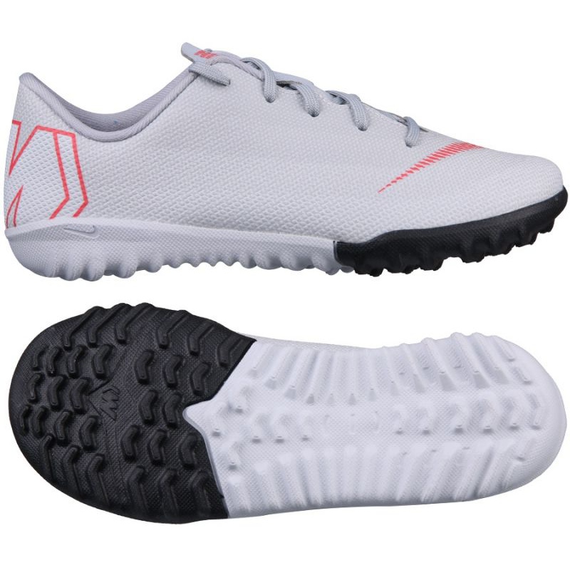 As chuteiras Nike Mercurial VaporX 12 Academy TF Jr AH7353-060 são uma excelente opção para jovens atletas que desejam alcançar altos resultados em campo. Estes relvados cinzentos, dedicados aos rapazes, combinam design moderno com tecnologias inovadoras que apoiam o desenvolvimento das habilidades futebolísticas.