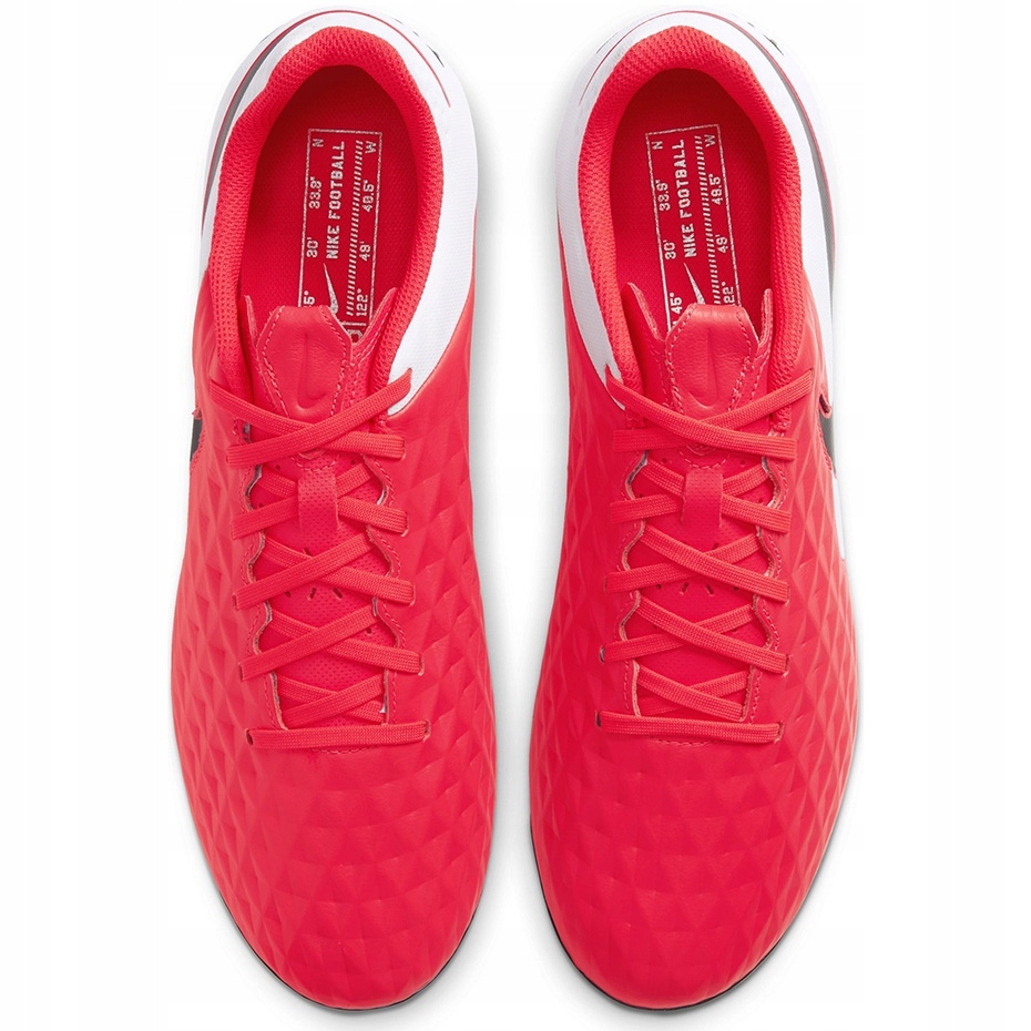 Nike Tiempo Legend 8 Academia FG/MG AT5292-606 Sapatos de futebol-um clássico de controle em uma intensa edição vermelha. Criado para jogadores semi -amadores que esperam conforto, algum contato com a bola e o controle universal da superfície gramada natural e artificial.