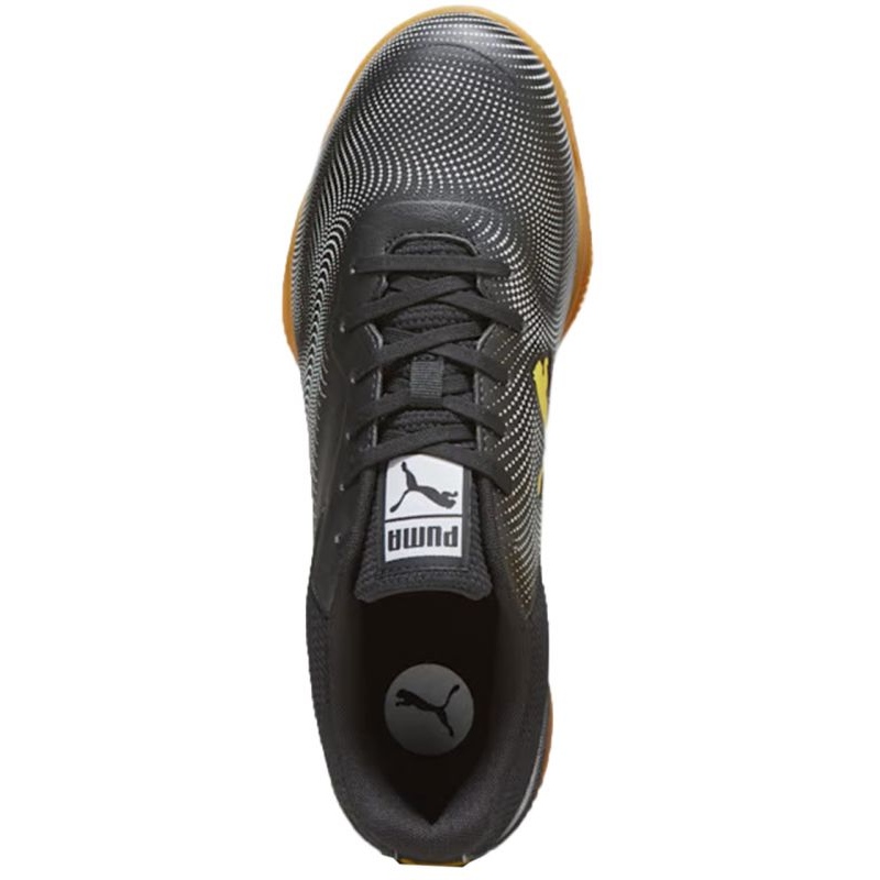 O design dos calçados é uma construção baixa clássica que dá aos jogadores liberdade de movimento e confiança em cada passo, enquanto a cor preta com detalhes adicionais em amarelo cria um visual elegante e dinâmico. O material externo sintético é leve e resistente à abrasão, o que também se traduz em maior vida útil do calçado.