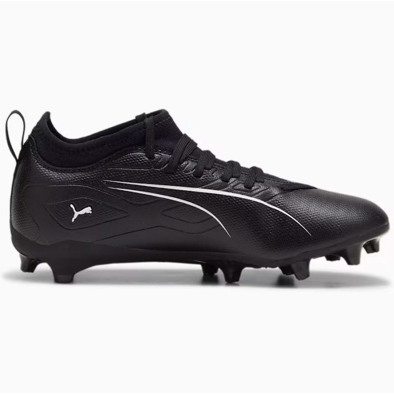 Puma Ultra 5 Match FG/AG 108096-02 Sapatos de futebol em preto são uma escolha perfeita para jovens adeptos de futebol que procuram calçados de jogo de alta qualidade. Esses engarrafamentos esportivos, dedicados a meninas e meninos, são perfeitos para superfícies duras e grama artificial.