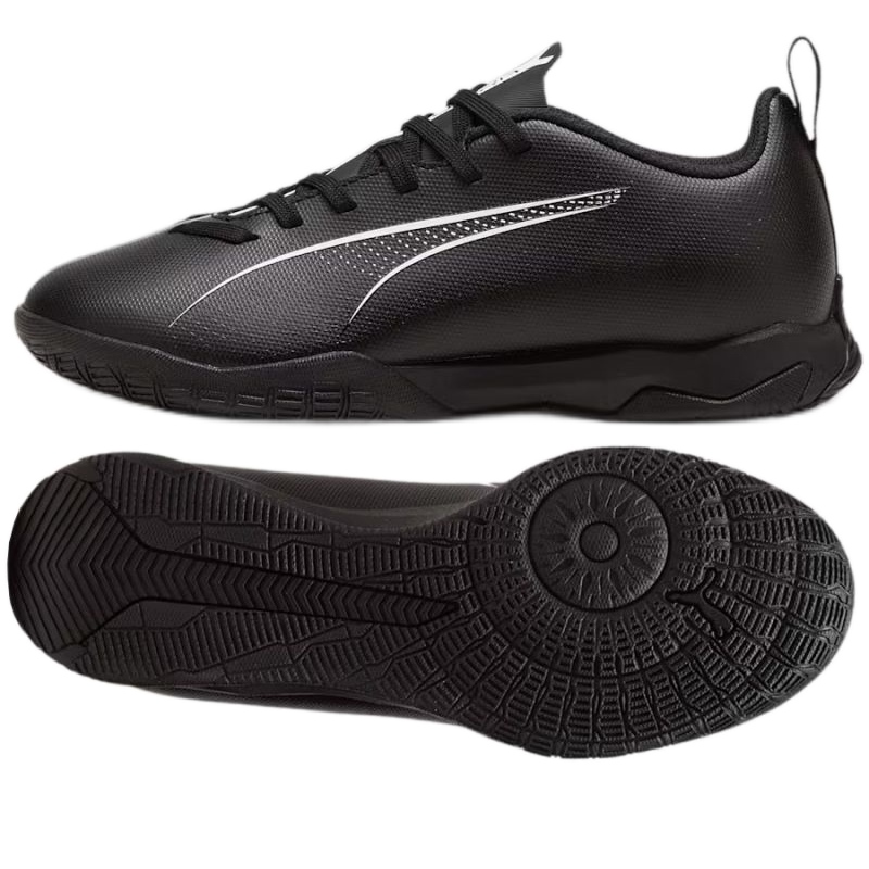 Uma sola de borracha com um piso multidirecionário garante excelente adesão em várias superfícies do salão, o que é crucial para alcançar os melhores resultados. Os sapatos Puma Ultra 5 Play It são destinados a crianças e adolescentes, o que os torna um produto unissex disponível para meninas e meninos.