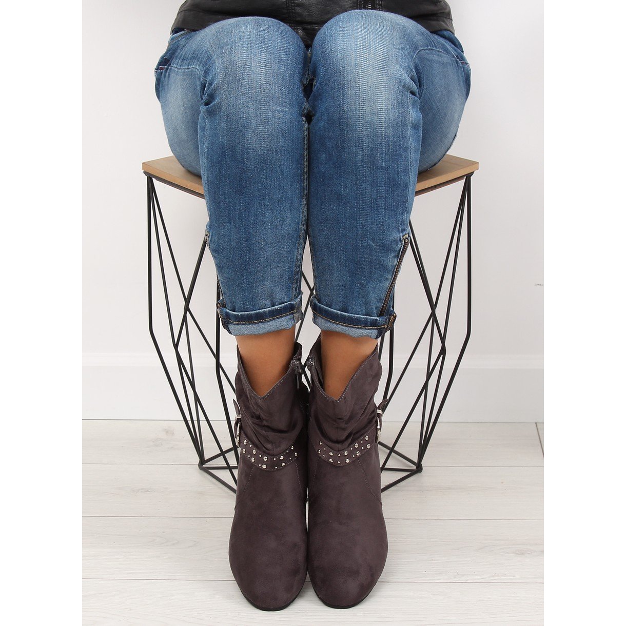 Graças à cunha e à biqueira amendoada, você não terá medo de nenhuma dificuldade - você passará o dia facilmente, sentindo-se elegante e confortável. Escolha botins com tachas como o complemento perfeito para o seu guarda-roupa do dia a dia e desfrute do seu estilo e conforto únicos!