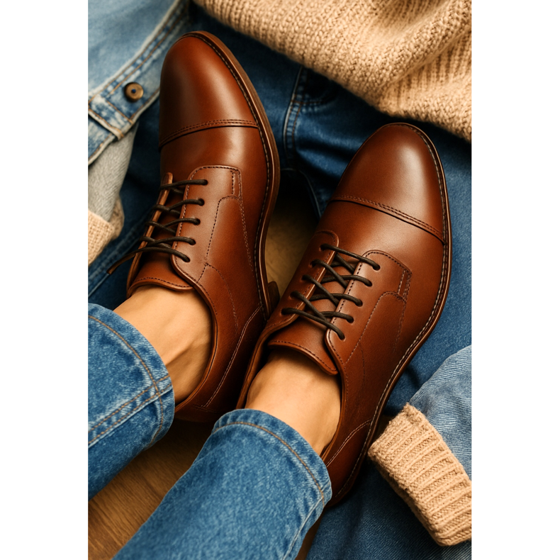 O couro natural é flexível e adapta-se ao pé ao longo do tempo. Sapatos de couro novos podem ser rígidos, mas depois de usados, eles se tornarão muito confortáveis. Tempo de pausa: 1-3 semanas.