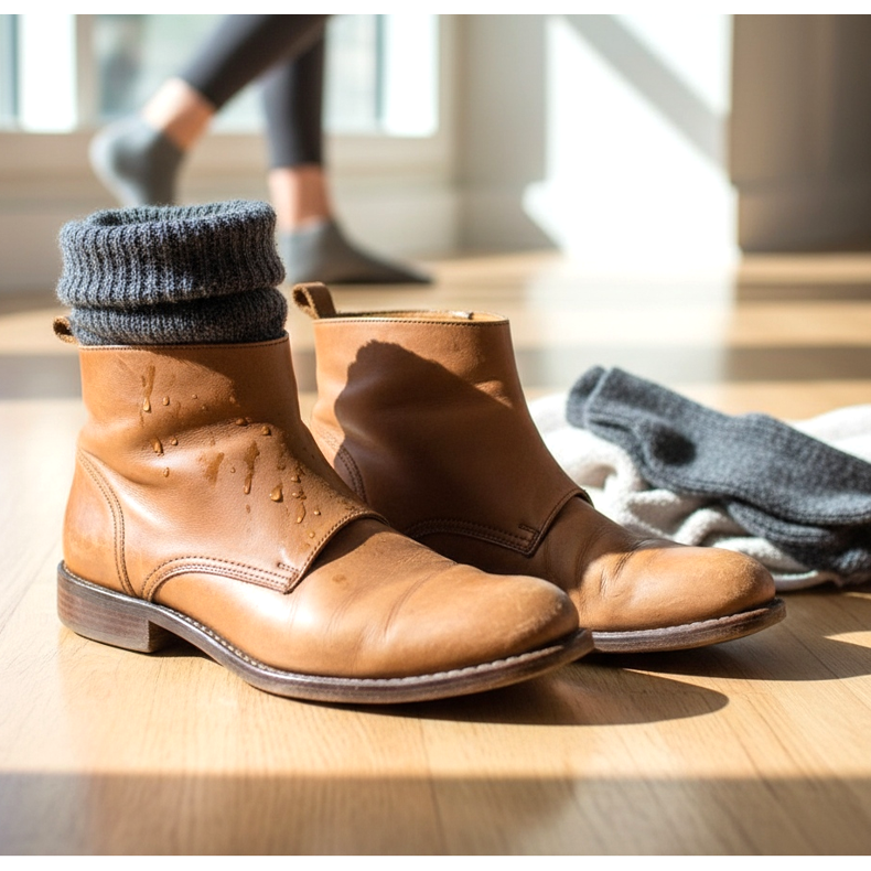 O método mais antigo e simples são meias grossas e úmidas. Molhe-os levemente (não podem estar pingando!), calce-os e calce-os em sapatos justos. Use-os em casa enquanto aguentar ou até que as meias sequem. A umidade suaviza a pele e o pé feito de material grosso a estica.