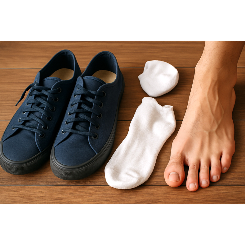 ✗ Usar sapatos sem meias — o suor é absorvido diretamente no material