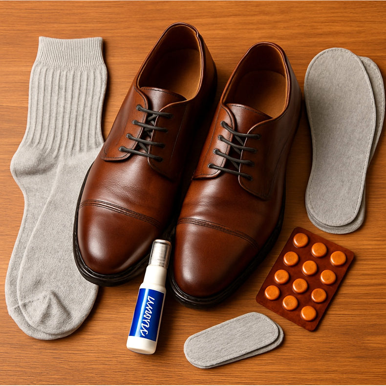- Antitranspirantes para os pés (por exemplo, Odaban, Perspirex)