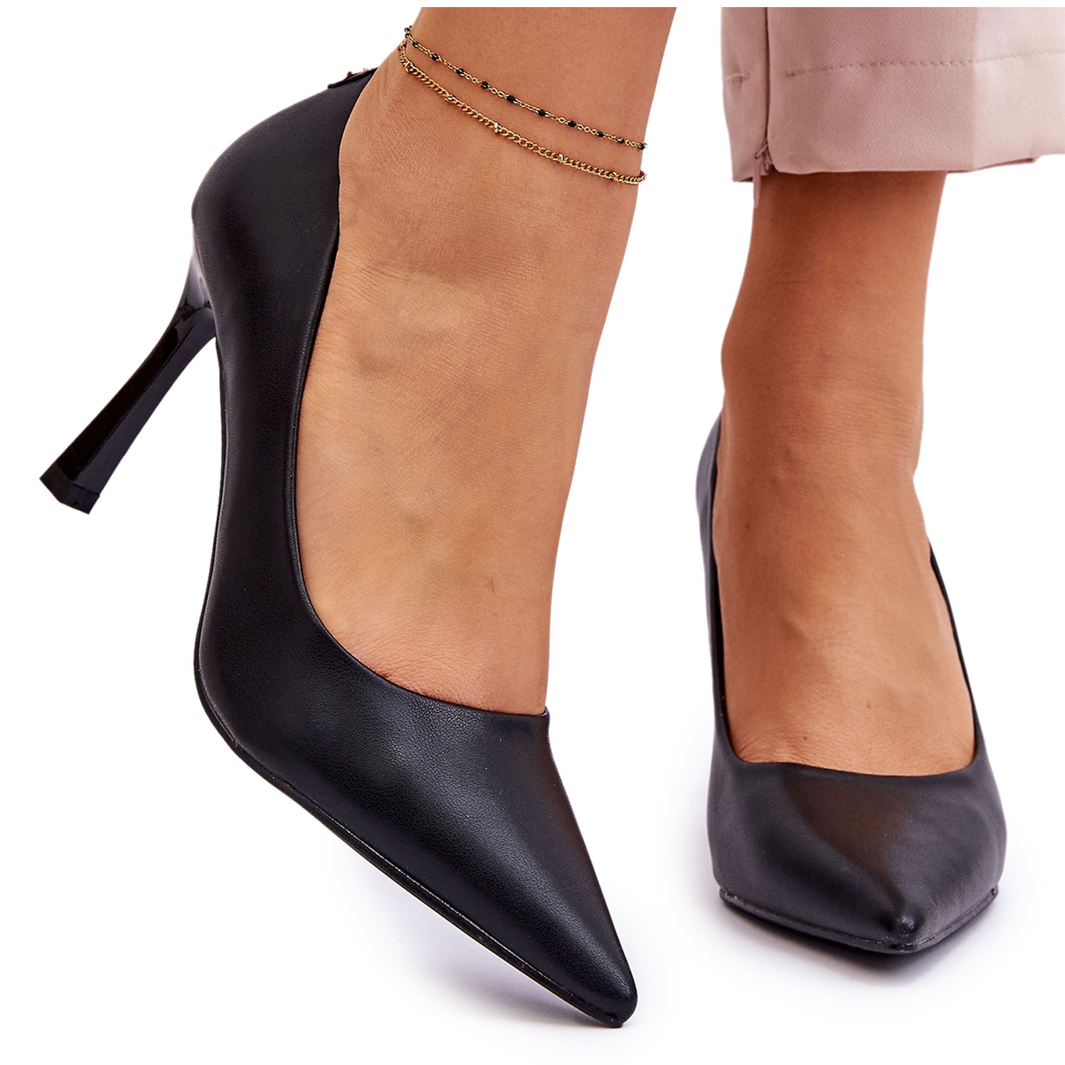 As elegantes e modernas bombas de Vinceza Kelsey são uma obrigação em um guarda-roupa feminino. Feito de couro ecológico, com nariz estreito e redução do salto de 9 cm de altura, adicione estilo à figura e aumente opticamente as pernas. A palmilha macia proporciona conforto ao longo do dia, e o salto rígido garante a estabilidade dos pés. Modelo escorregado, disponível em uma cor preta clássica - ideal para o escritório e para passeios noturnos.
