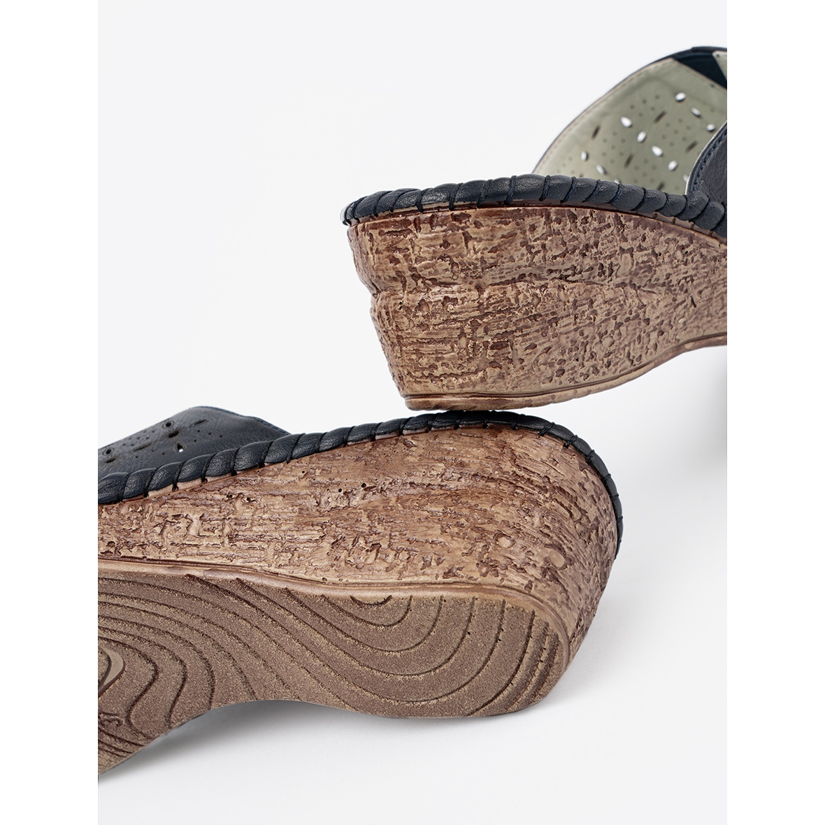 A altura do calcanhar de 5,5 cm os torna ideais para as estilizações diárias, alongando opticamente as pernas. O design aberto do calcanhar e do céu aberto fornece excelente ventilação, o que é importante em dias mais quentes. Graças à inserção de couro, os flip -flops garantem o conforto do uso, o que os torna uma ótima opção para passeios, compras ou reuniões com amigos.