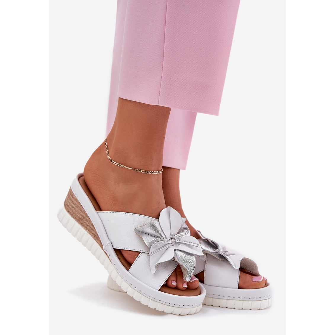 ARTIKER ARTIKER Cunhas de couro feminino com um artador de flores decorativo 54c0538 branco e prata