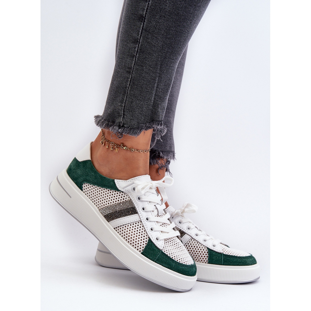 S.Barski S.Barski D&A Tênis feminino de couro LR110 Verde-Branco