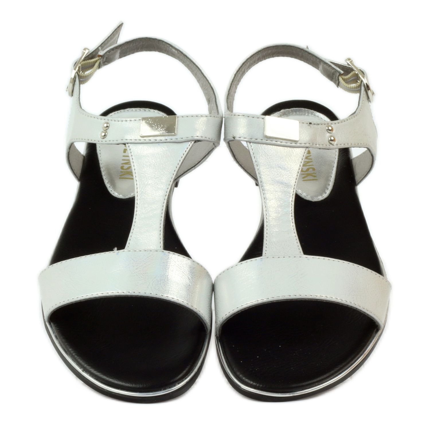 Descubra a elegância e o conforto oferecidos pelas sandálias femininas M.Daszyński wz.1583 em uma linda cor prata. Estas sandálias clássicas são obrigatórias no guarda-roupa de toda mulher que valoriza estilo e classe. Fabricados em material semelhante a couro de alta qualidade, distinguem-se por um design subtil que se adapta perfeitamente ao estilo quotidiano e formal.