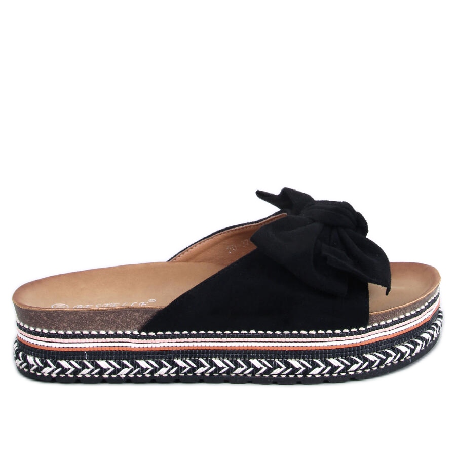 Confeccionados em couro camurça ecológico de alta qualidade, esses chinelos pretos são a essência da classe e do conforto. Leve, agradável ao toque e absolutamente moderno. A sua vantagem inegável é o laço impressionante, que confere a estes sapatos um carácter único e faz com que até o look mais simples pareça sofisticado.