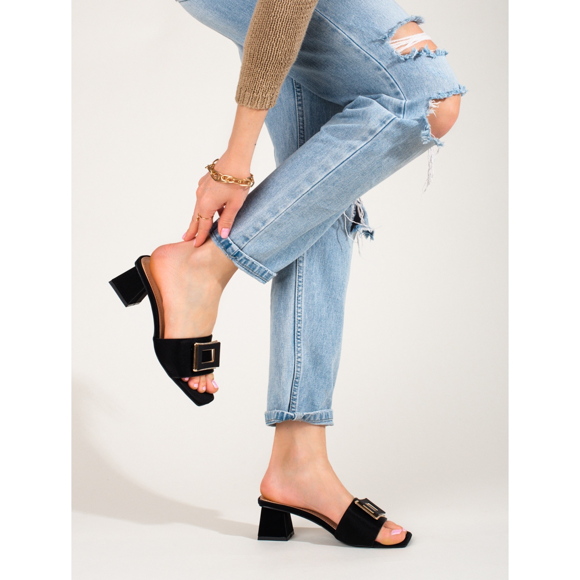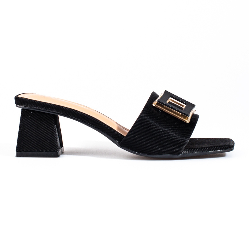 Detalhes: Deslizamento de tecido feminino sobre salto baixo Shelovet preto