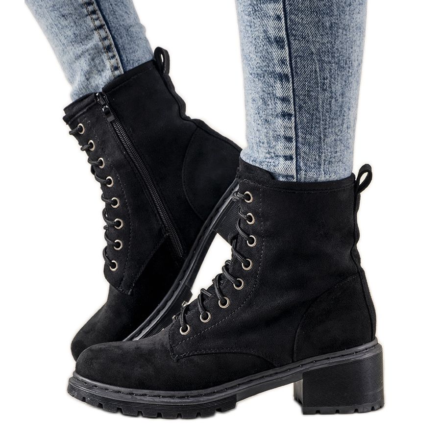 O elegante e o universal deve ter botas são feitas de couro ecológico de camurça em preto atemporal. O design combina um corte elegante e caçador com a conveniência do uso diário - é um modelo ideal para o outono e o inverno, que você pode facilmente misturar com muitos estilos.