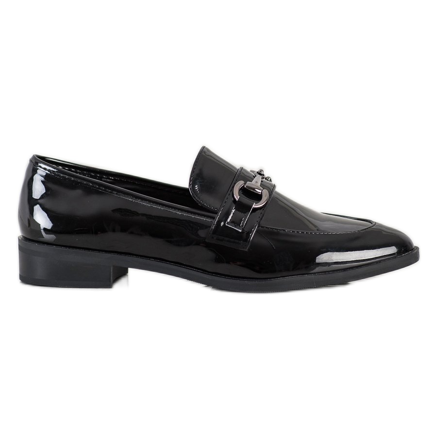Uma vantagem adicional é uma grande fivela prateada colocada no pulso, que é um atraente elemento decorativo, enfatizando o caráter elegante dos mocassins. A sola de plástico com banda de rodagem garante aderência e conforto adequados ao caminhar.