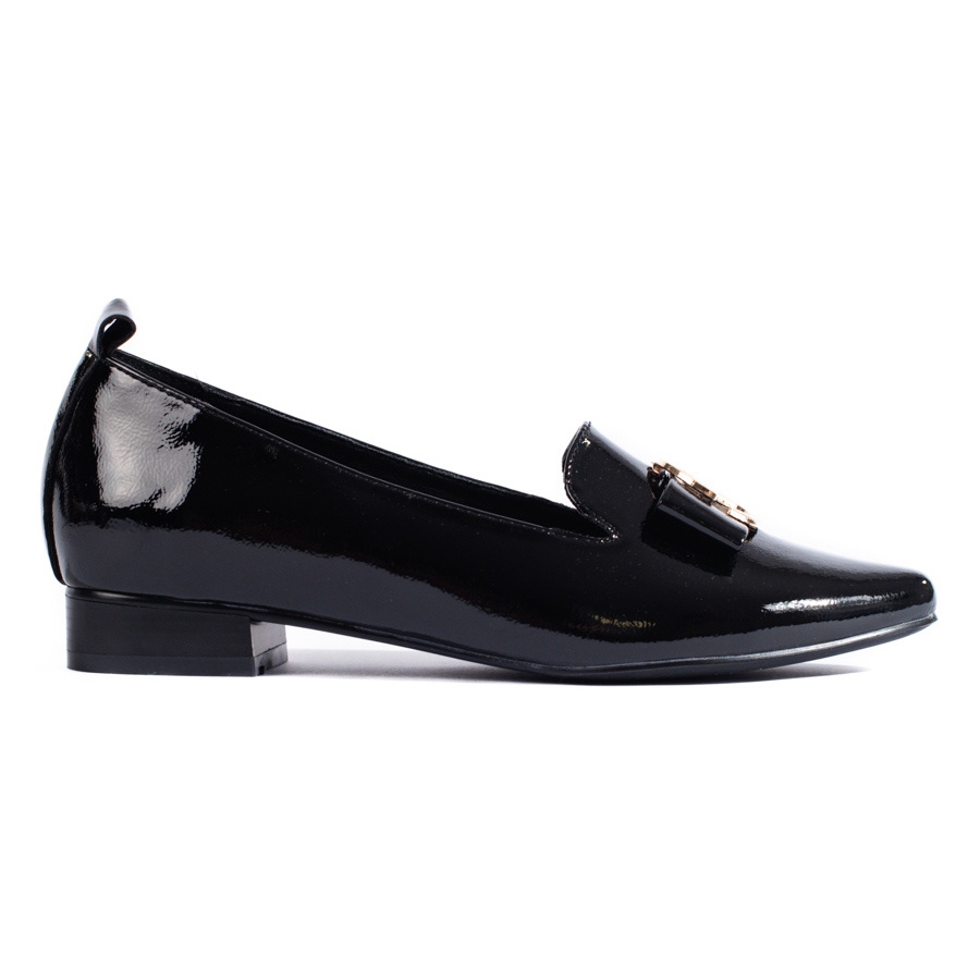 Detalhes: Elegante mocassim laqueado de salto baixo Vinceza preto