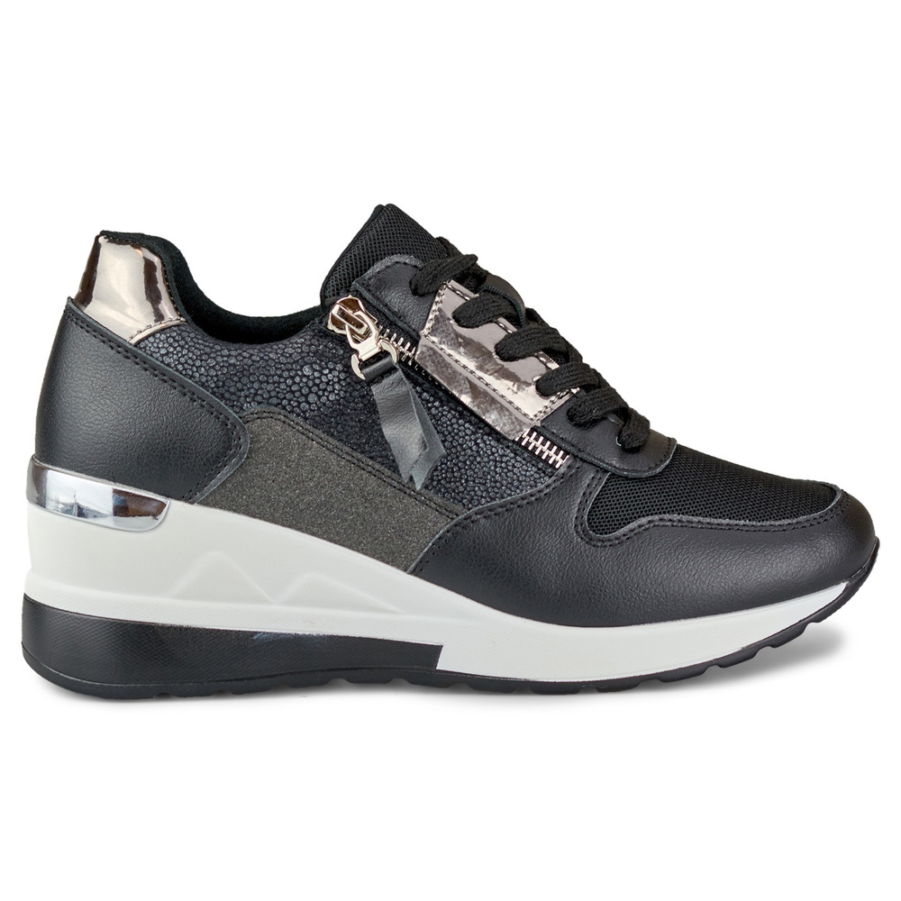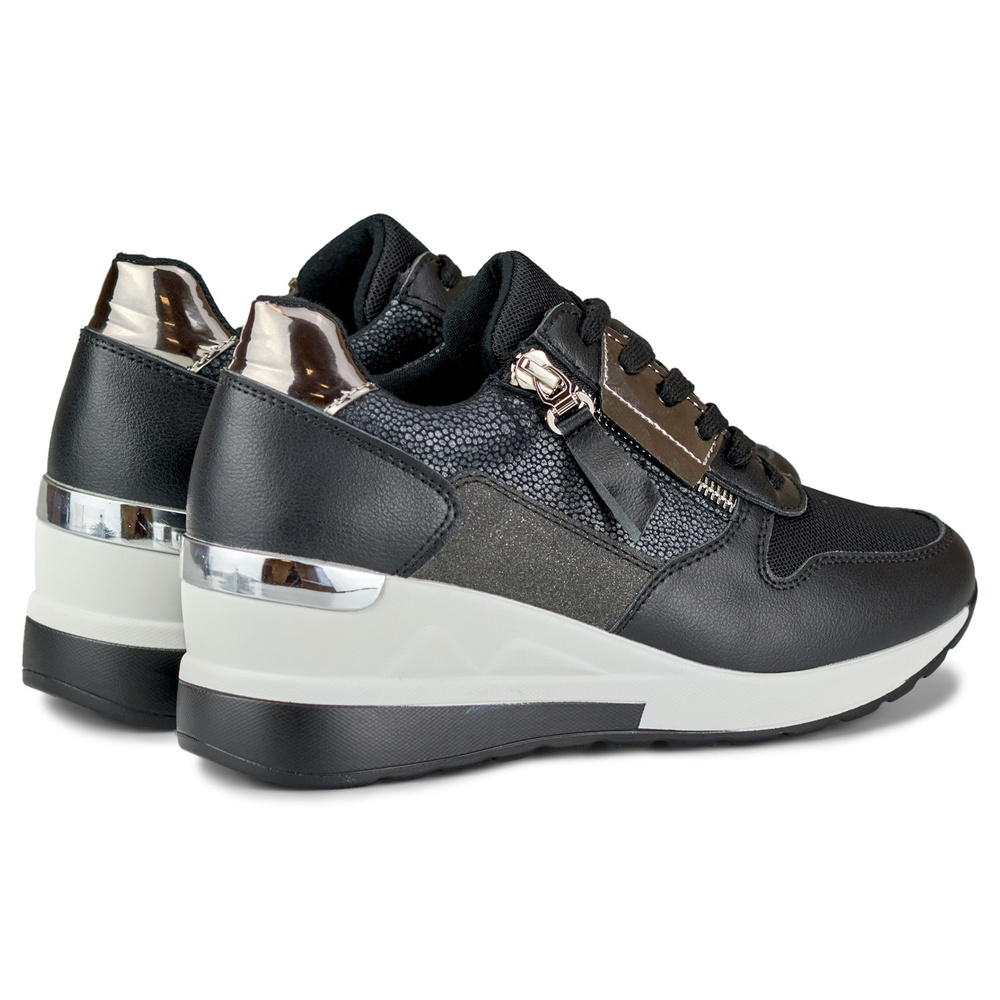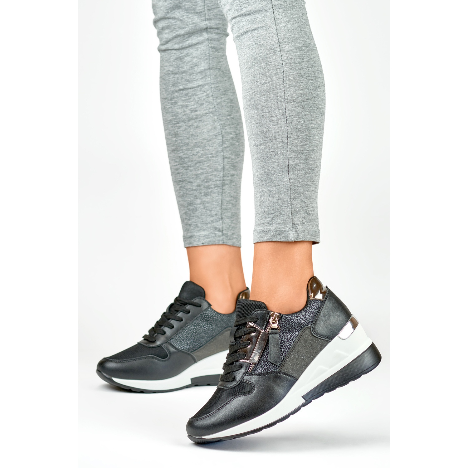 Detalhes: Elegantes sapatos esportivos de cunha preta preto