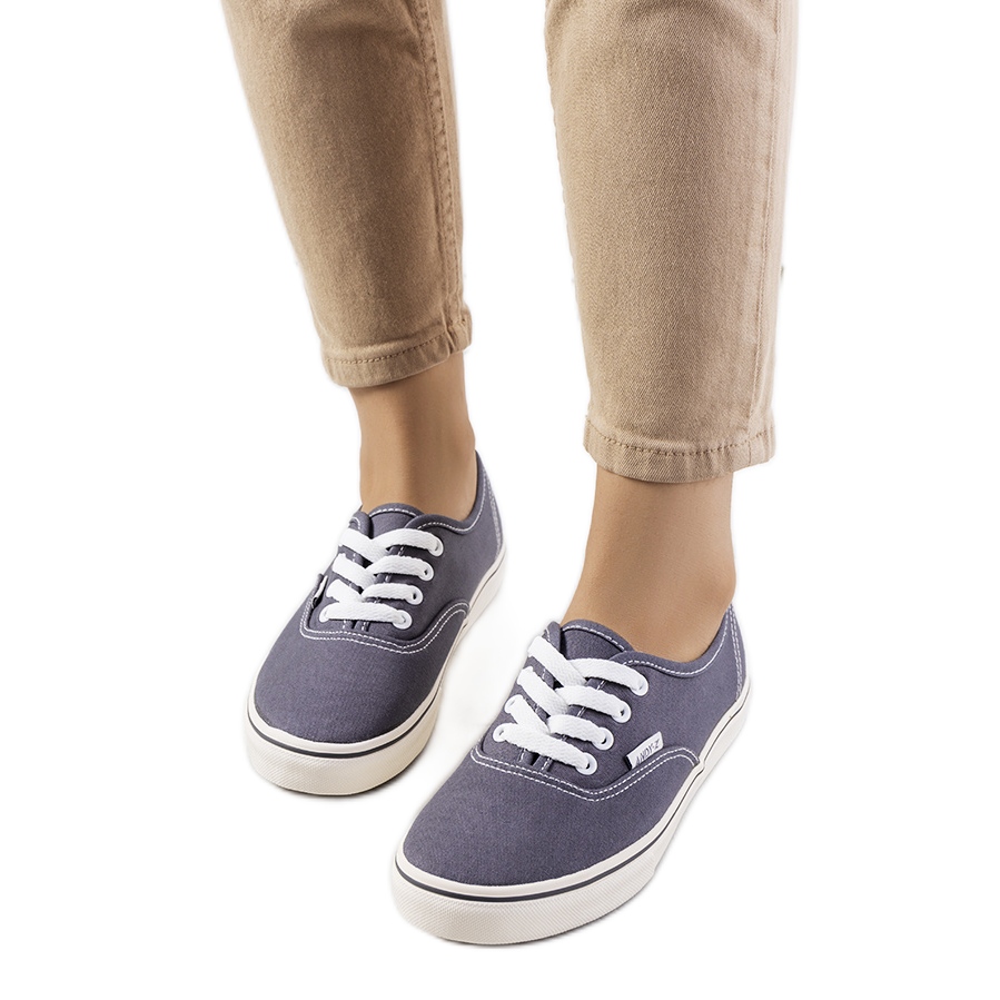 O esmalte de tênis universal e confortável na cor cinza é uma proposta para uma base diária - para caminhadas, trabalho e saídas casuais. Feito de tecido arejado, montado em uma sola de borracha branca flexível com um corte colorido, combine conforto com um acabamento sutil e elegante.