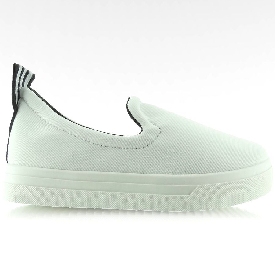 Slip-on com inserção BL27 - tênis branco que combina conforto com um toque de moda. Confeccionados em tecido grosso, agradável ao toque e resistente, distinguem-se por uma inserção trendy no calcanhar, que lhes confere um carácter original. A sola de borracha flexível amortece perfeitamente os pés, tornando o calçado leve e confortável no uso diário.