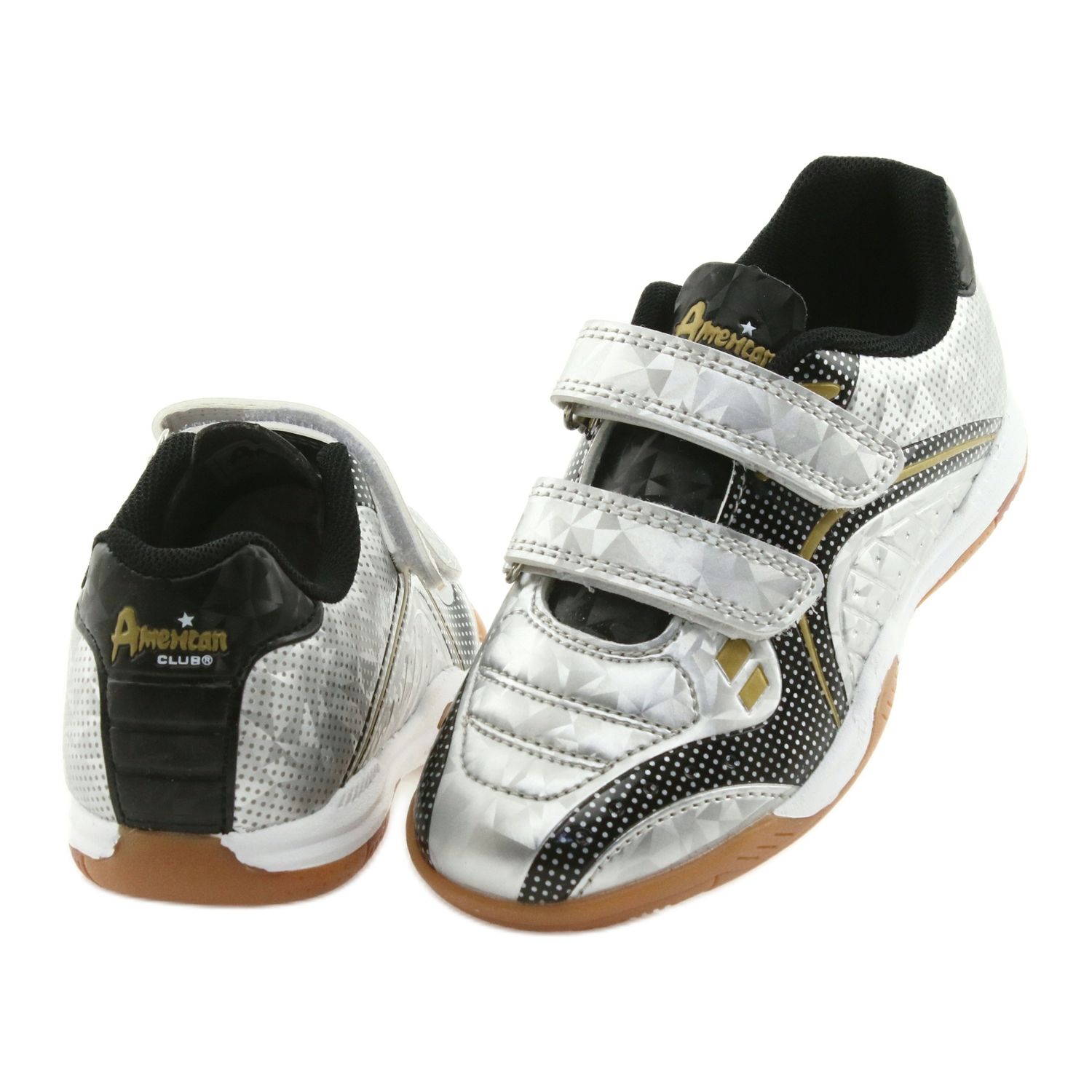 Os calçados internos American Club Silver se diferenciam pelo design moderno, em tons prateados com sutis detalhes em preto e dourado. Sua aparência única os torna atraentes para meninos e meninas. Os sapatos são fechados com prático velcro, o que os torna fáceis de calçar e descalçar, ao mesmo tempo que permite um ajuste perfeito ao pé.