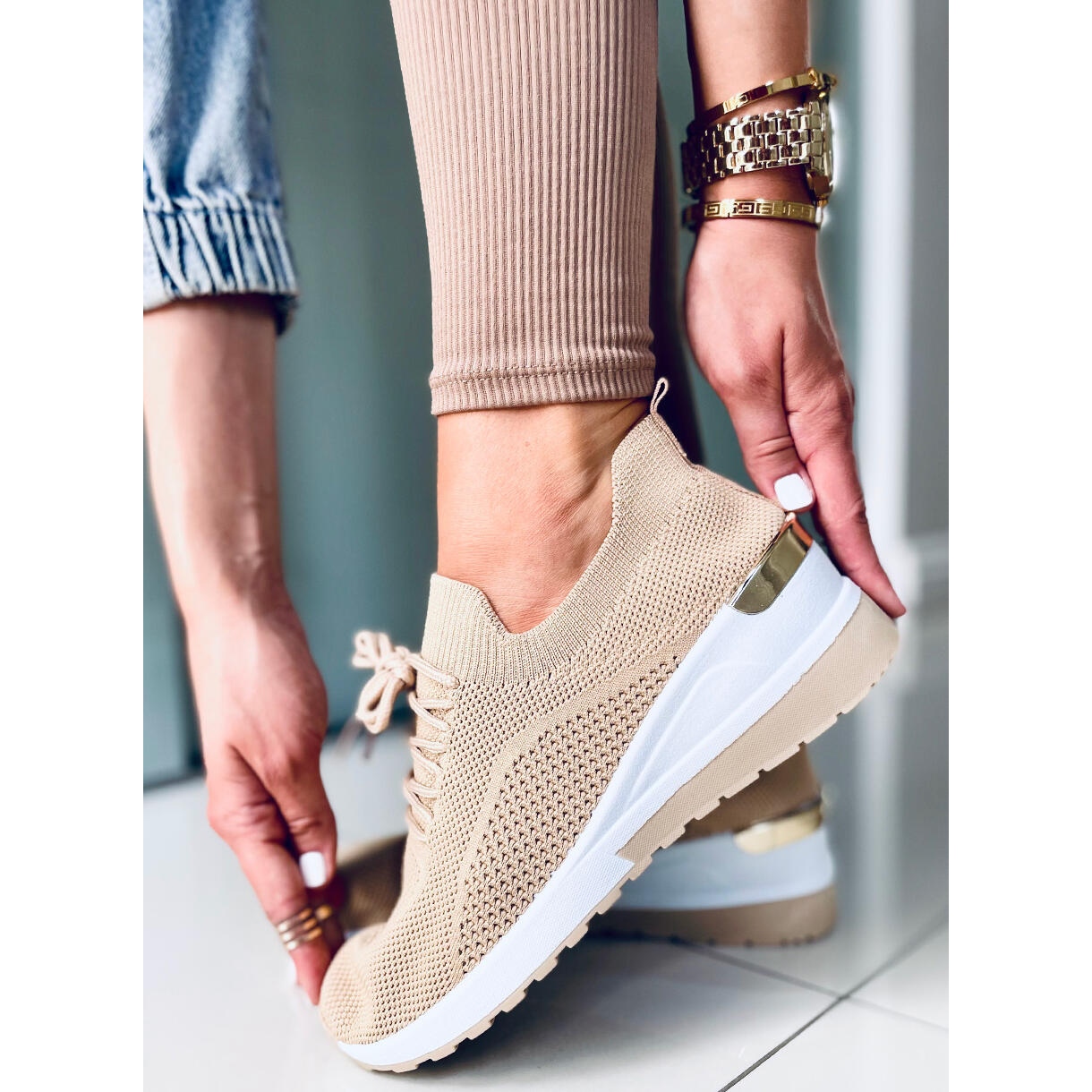 Os calçados esportivos Faggio meia em bege cáqui são a escolha perfeita para mulheres que valorizam conforto e estilo moderno. Estes sapatos de meia cunha de 6 cm de altura combinam perfeitamente um carácter desportivo com um look elegante, o que os torna adequados para o uso diário, tanto num passeio como em reuniões de amigos.