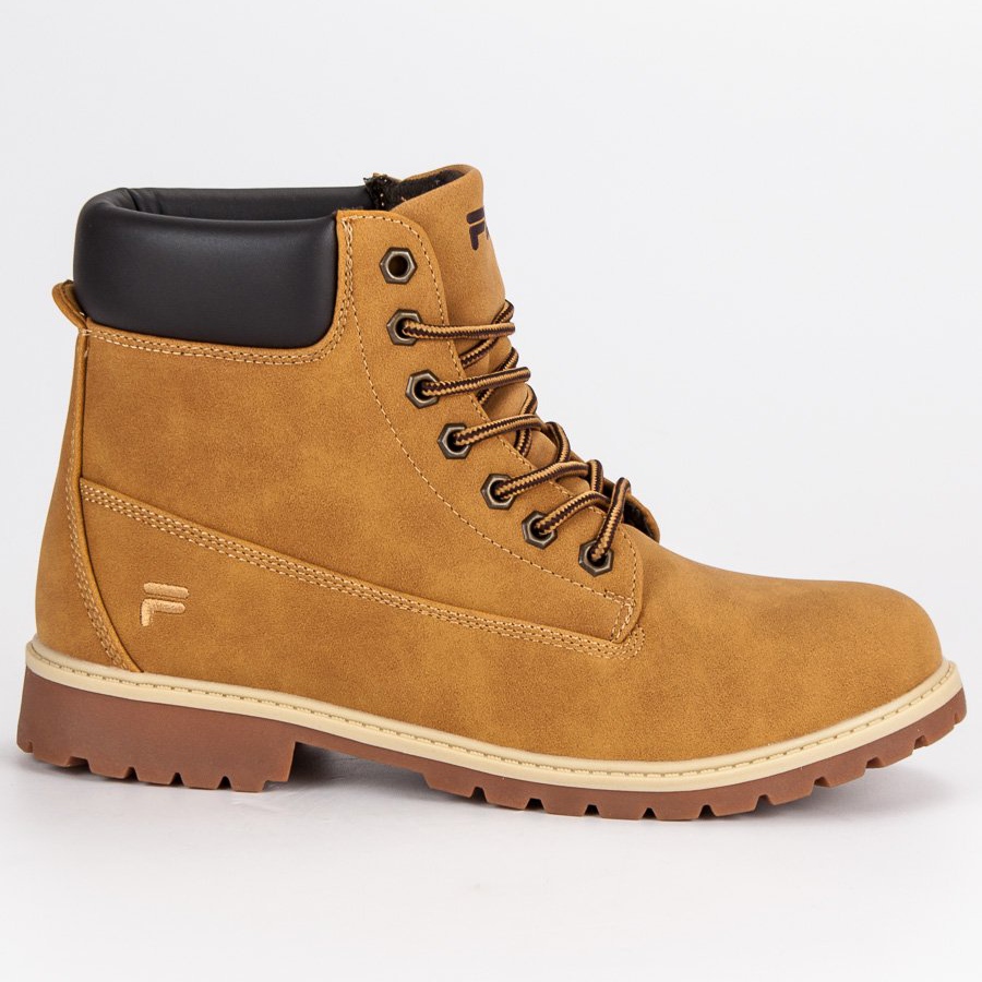 Botas masculinas clássicas e sólidas da Fila, na cor marrom universal. O cabedal alto e o cadarço garantem um ajuste estável, e a característica letra F na lateral enfatiza o caráter da marca do calçado. A sola em material sintético tem uma tonalidade de castanho ligeiramente diferente da parte superior, o que acrescenta um contraste subtil. Os sapatos são confeccionados em couro ecológico, a palmilha é em tecido - não são isolados, por isso são perfeitos para o outono e para os dias mais frescos, mas não gelados.