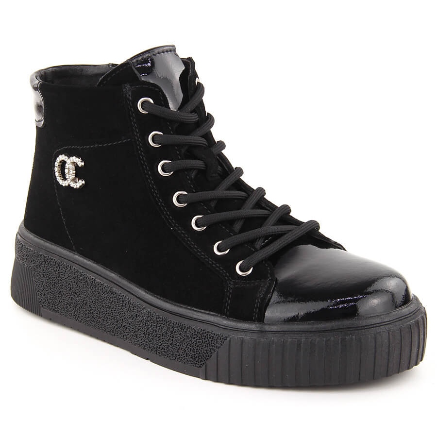 Esses tênis altos são perfeitos para o guarda -roupa de outono e inverno, sendo um complemento perfeito para estilizações casuais e mais elegantes. Eles proporcionam conforto graças à largura padrão da parte superior de aprox. 29 cm e um dedo redondo.