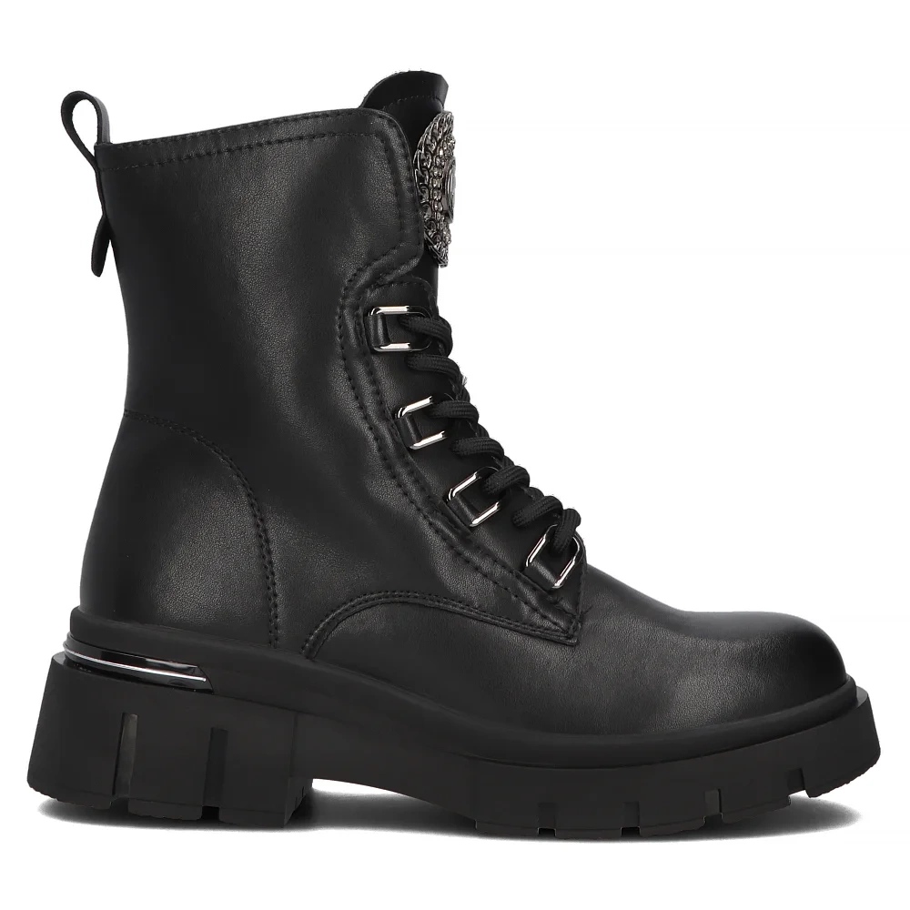Caracterizado pelo fecho de renda prática, as botas se adaptam efetivamente ao pé, garantindo a melhor estabilidade durante cada etapa. A altura da parte superior de 15 cm e uma plataforma de 6 cm de altura torna esse modelo extremamente elegante e alonga opticamente as pernas, oferecendo conforto ao longo do dia.