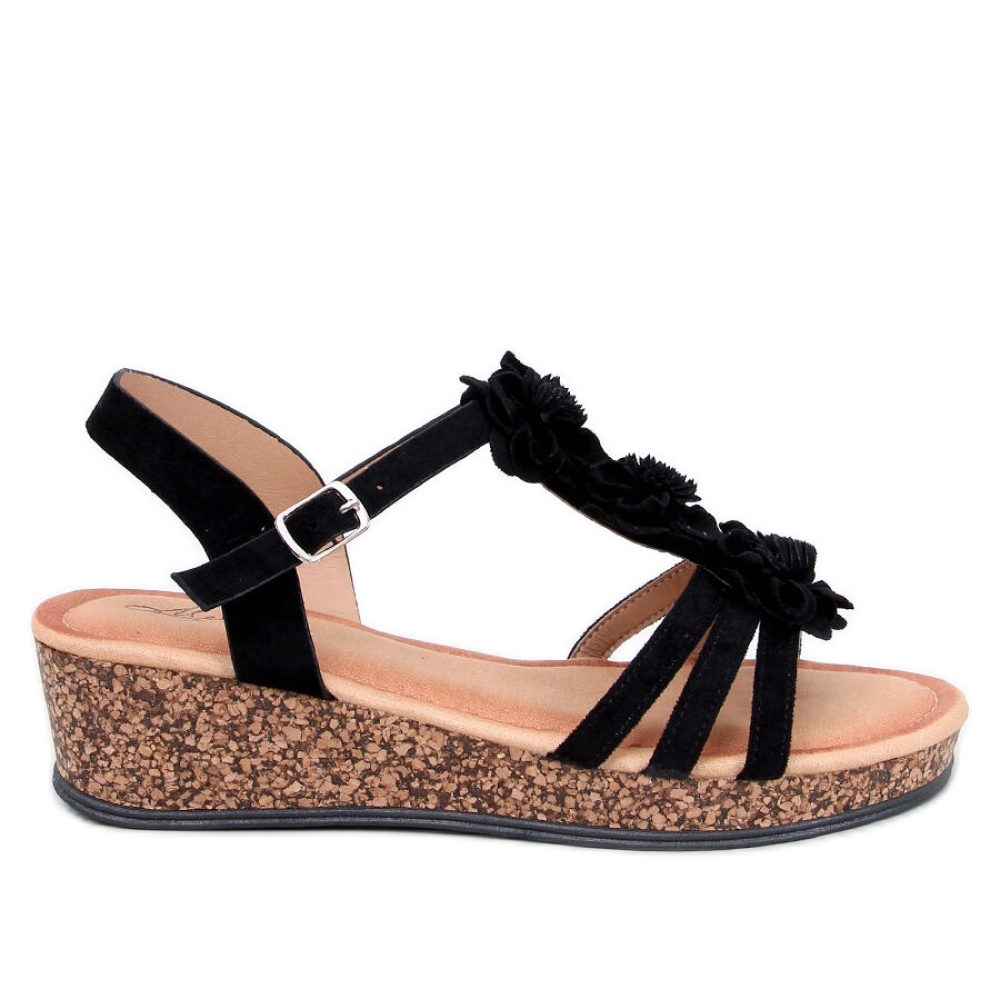 Detalhes: Fisken Sandália de cunha com flores preta - Inello. preto