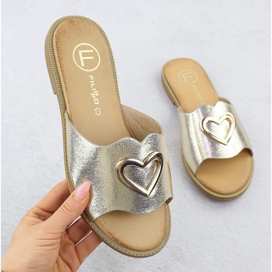Descubra o estilo e o conforto únicos, graças às abas femininas com um coração decorativo da marca Filippo. O modelo DK6909 em cor dourada é uma proposta ideal para os dias de verão, que fornecerá não apenas uma aparência elegante, mas também a conveniência do uso.