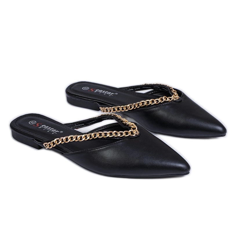 Não hesite! Enriqueça sua coleção de calçados com este modelo elegante que combina estilo, conforto e funcionalidade. Os chinelos pretos decorados com uma corrente são um must-have absoluto para os próximos dias de verão!