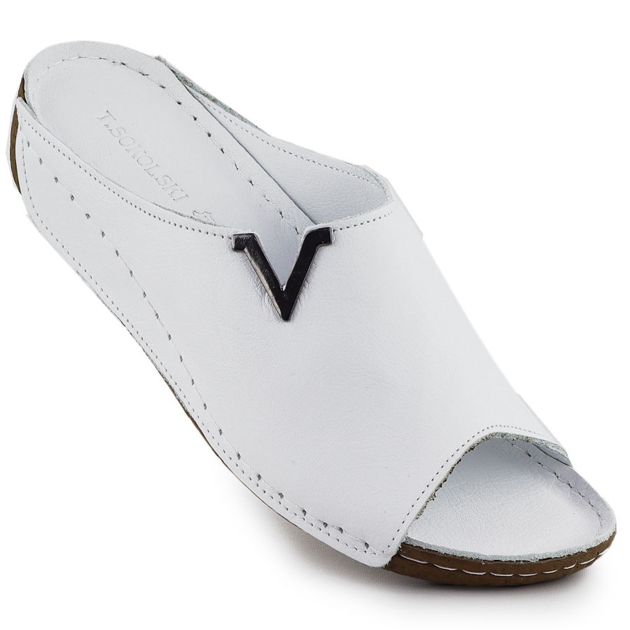 Descubra conforto e elegância graças aos chinelos femininos de couro da marca T.Sokolski, Modelo L22-301. Esses chinelos brancos extremamente elegantes e confortáveis são o complemento perfeito para as estilizações de verão, que são perfeitas para a praia e em uma caminhada pela cidade.