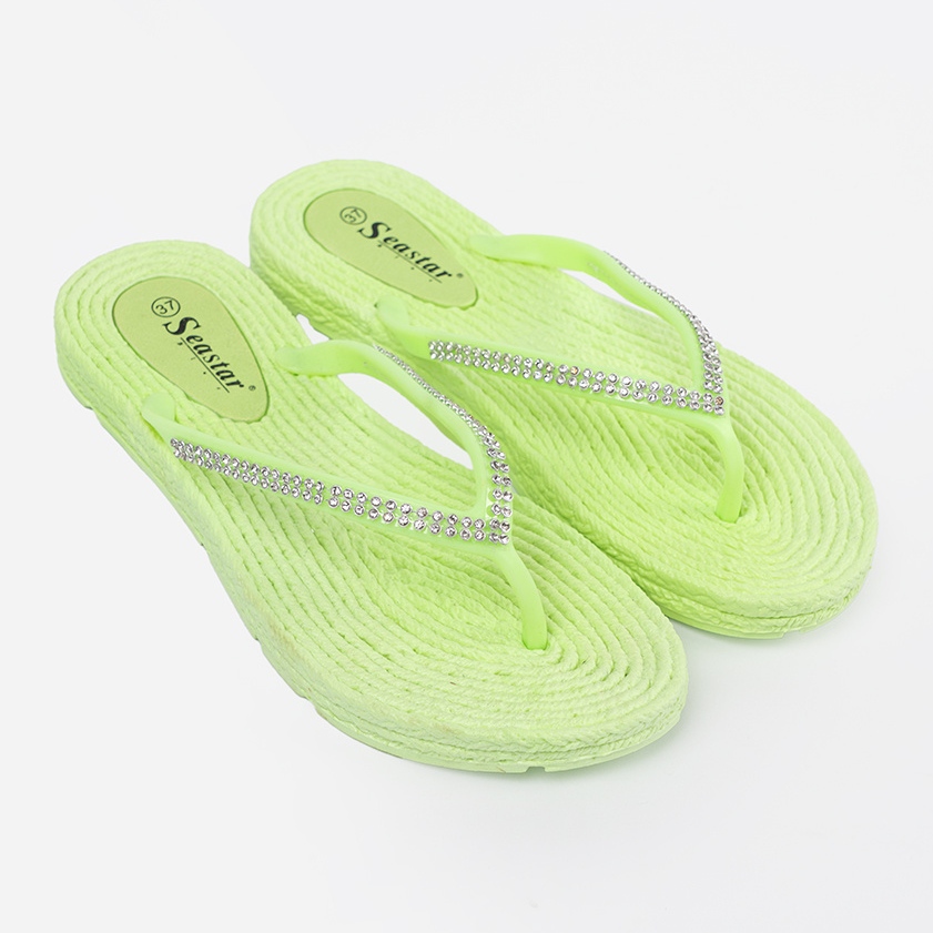Apresentamos os flip -flops de Seastar extremamente elegantes em uma cor verde da moda, que combina perfeitamente a elegância com conforto. Esses flip -flops elegantes femininos foram criados para dias quentes, constituindo a adição perfeita na praia ou durante as caminhadas de verão.