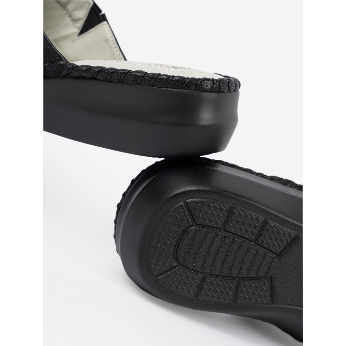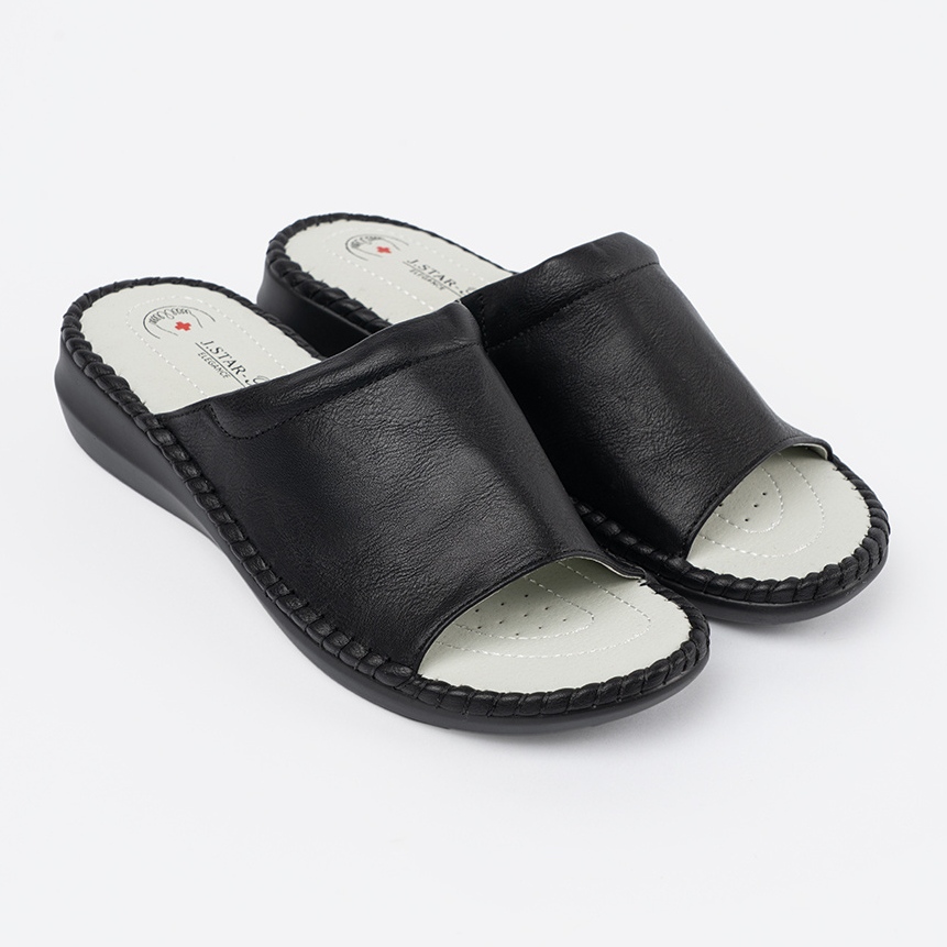 Detalhes: J. Star Flipers de mulheres negras com uma inserção de couro preto