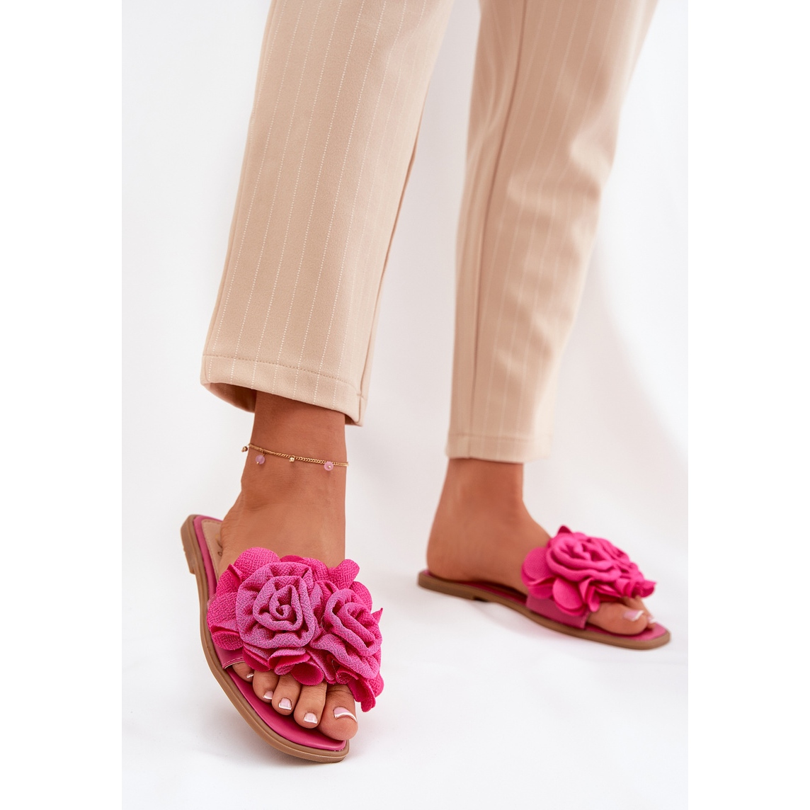 Os chinelos de mulheres lisos com flores com flores decorativas em fúcsia intensa são a escolha perfeita para mulheres que desejam combinar estilo com conforto. Feito de couro ecológico de alta qualidade, esses chinelos não são apenas estéticos, mas também ecológicos. Sua sola plana com uma altura de 1 cm proporciona conforto durante caminhadas diárias, e o corte inserido facilita a colocação e a decolagem.