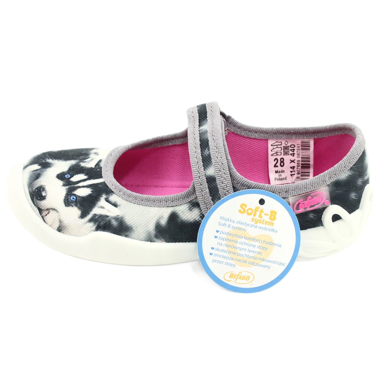 Flipers amigáveis para meninas, perfeitos para o jardim de infância e jogos do dia a dia. As partes superiores são feitas de tecidos de algodão respirável que fornecem higiene e conforto o dia todo. O corte especial é o pé opticamente, graças ao qual o modelo também se encaixa bem com pés mais estreitos e menores. O calcanhar rígido estabiliza o calcanhar, e o fixador de velcro permite que a criança use e encaixe sapatos por conta própria.