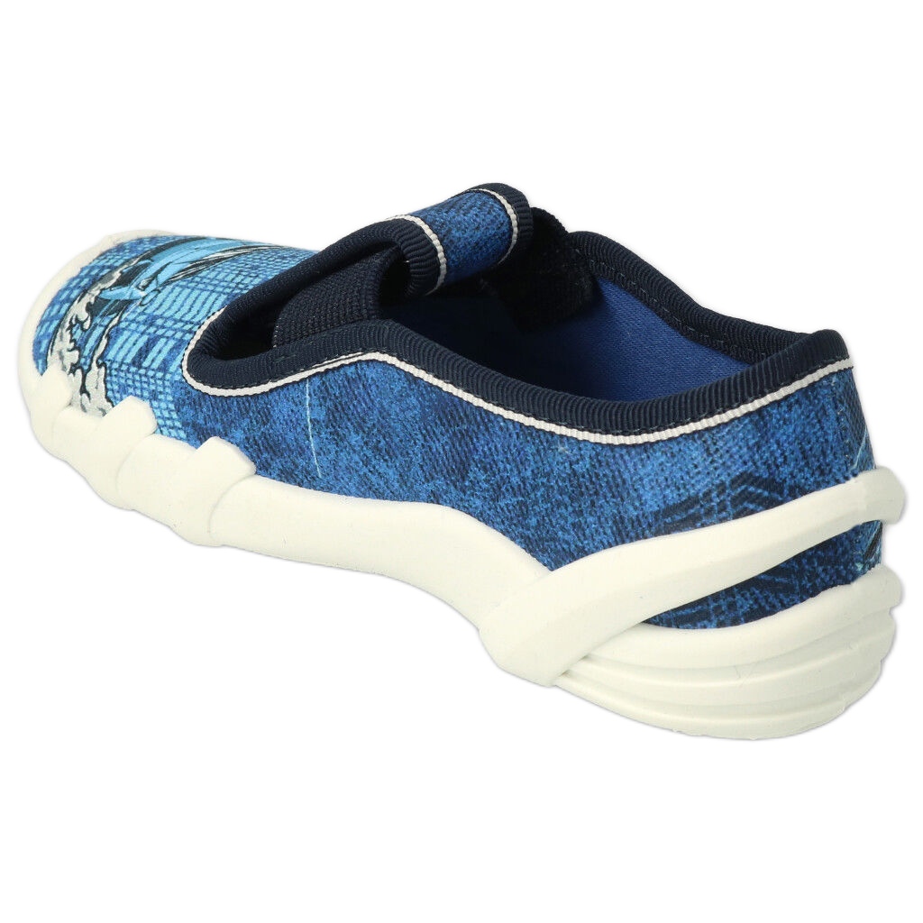 Os chinelos infantis Befado 290x270 em azul com um motivo de carro são a escolha perfeita para meninos pequenos que adoram automobilismo. Esses calçados confortáveis e saudáveis foram projetados para crianças ativas, proporcionando não apenas conforto, mas também apoio adequado para os pés. Graças à fixação rígida e ao certificado de "pé saudável", os chinelos são ideais para o desenvolvimento de pés das crianças.