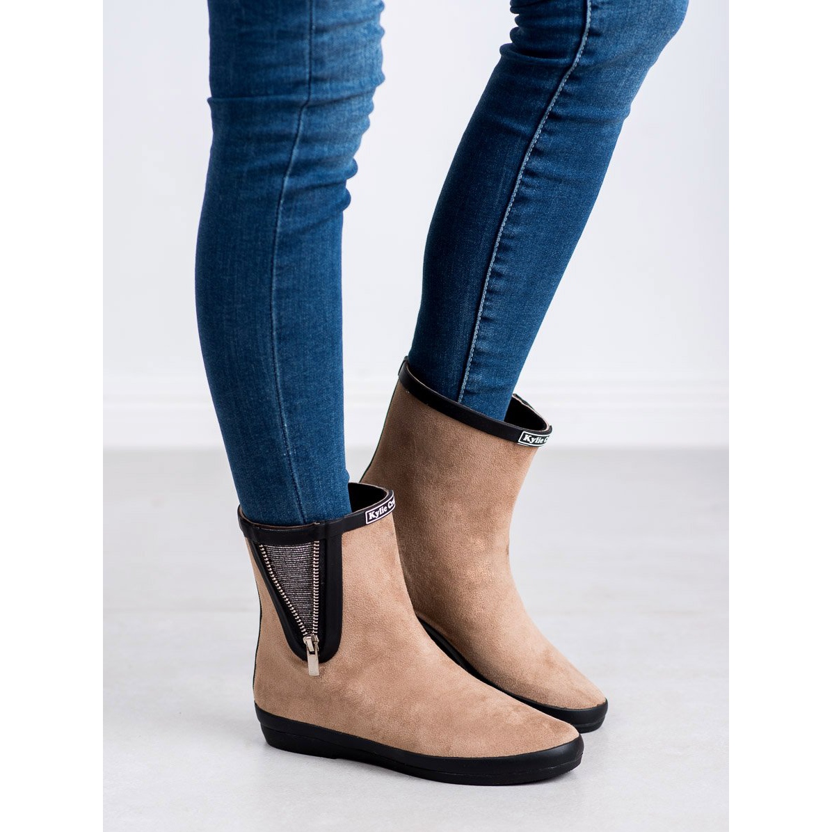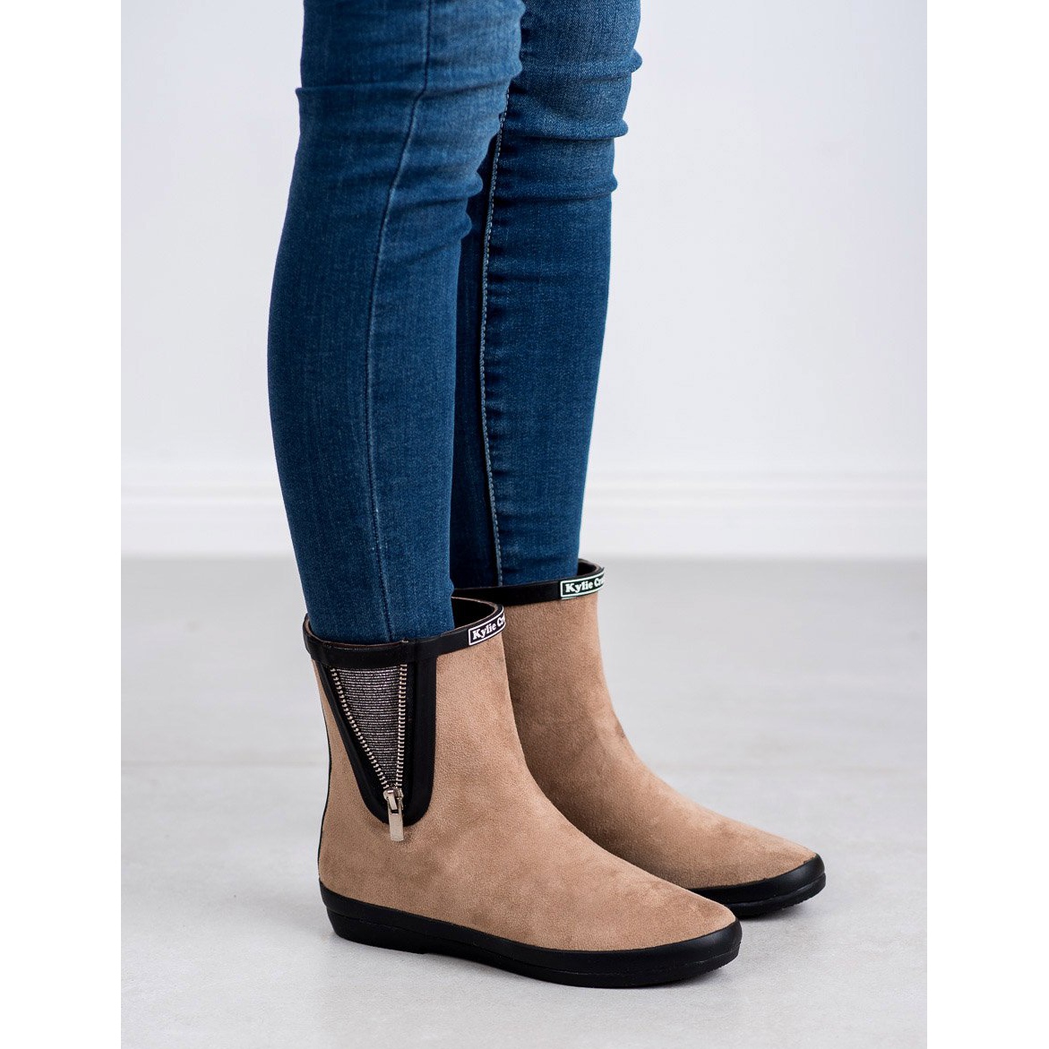Kylie Kylie Galochas de camurça com zíper decorativo bege
