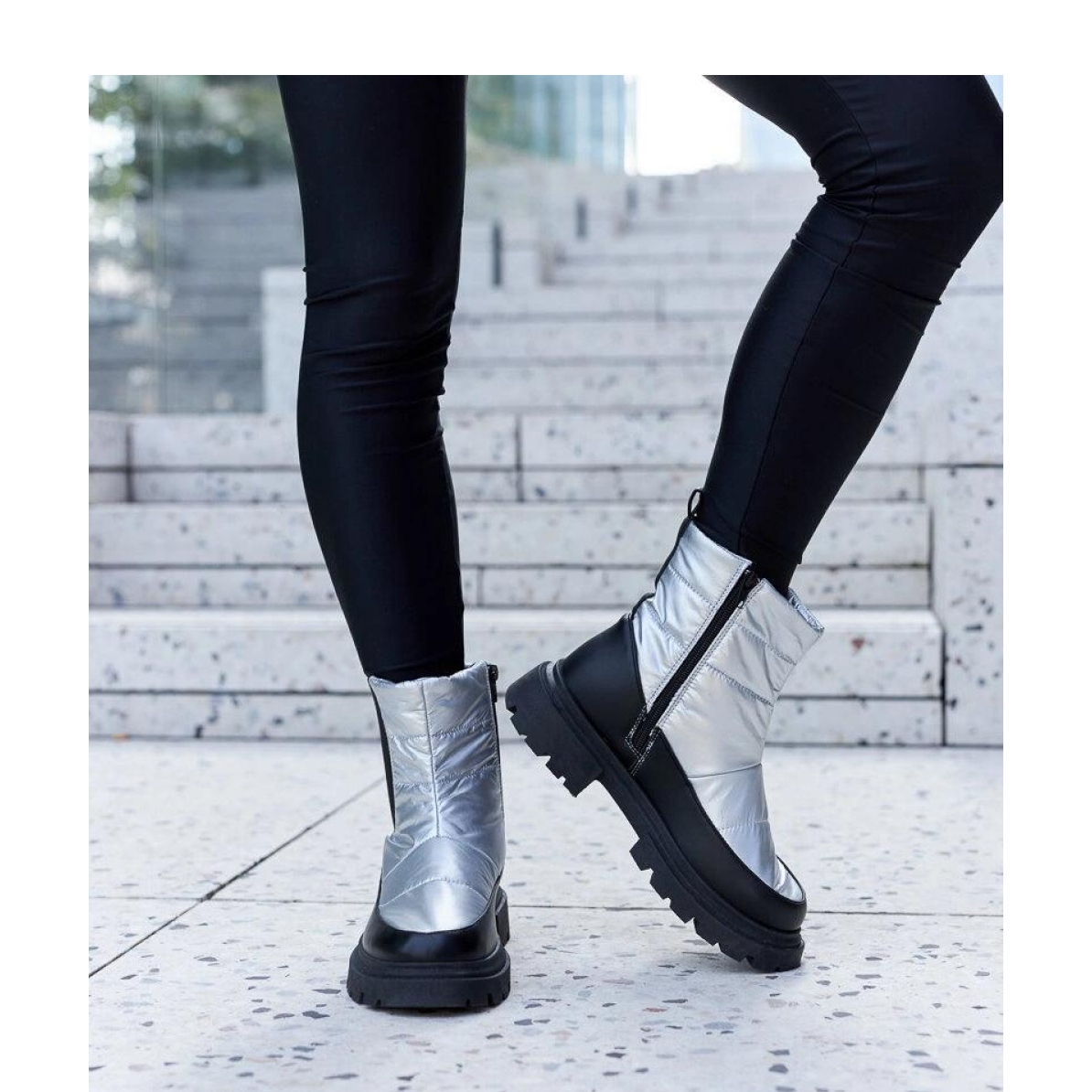 Feito de tecido de alta qualidade, essas botas de neve em cinza são caracterizadas por um design elegante e elevado, alcançando cubos. A trava decorativa ao lado não apenas facilita a instalação e a remoção de sapatos, mas também permite ajustar a largura, o que aumenta significativamente o conforto de usá -los. Os detalhes metálicos dão a eles um charme incomum, fazendo com que cada estilização ganhe um personagem único.