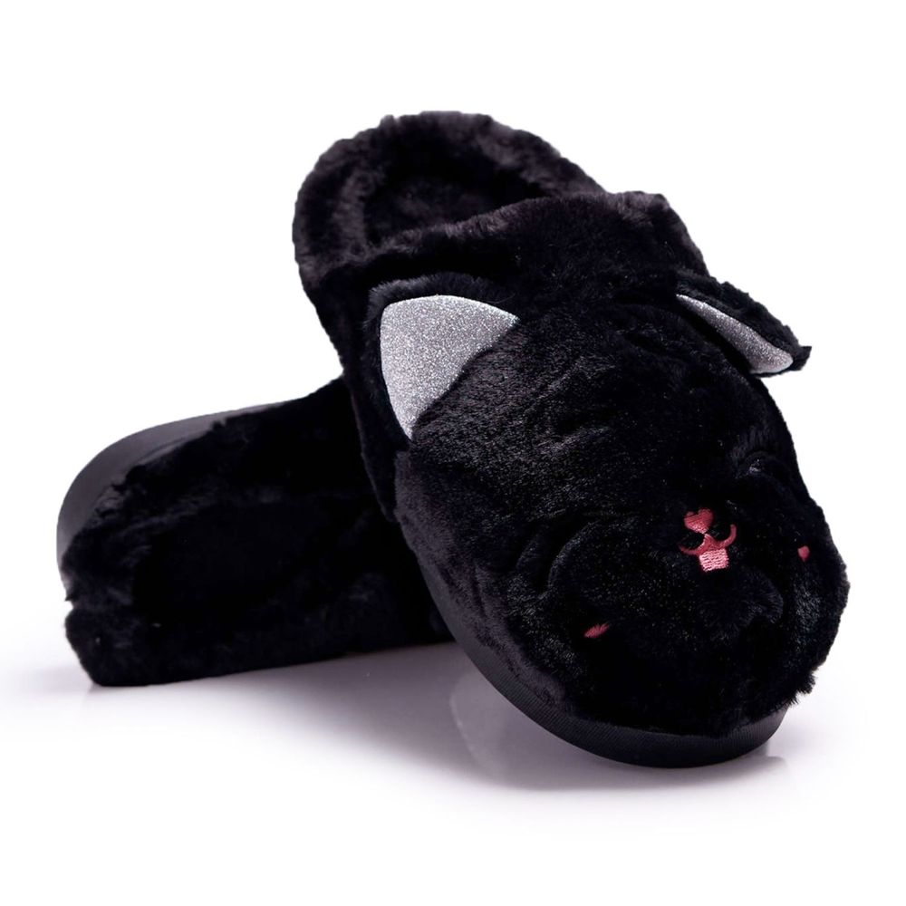 Inna marka Gatos chinelos femininos com orelhas pretas Sleppyhead preto