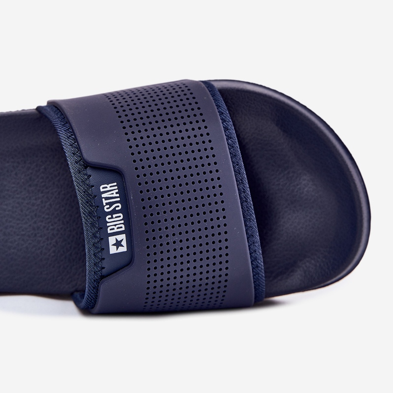 Descubra o extraordinário conforto e estilo no verão, graças à grande estrela masculina dos homens NN174696 retalhos masculinos em um belo tom de azul azul marinho. Esses chinelos são a solução perfeita para um dia relaxante acima da piscina ou uma caminhada na praia. Seu design minimalista significa que eles podem ser facilmente combinados a cada roupa de verão, e a cor universal os faz combinar com estilos diferentes.