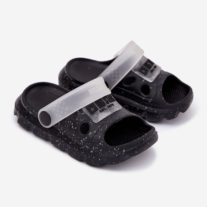Apresentamos grandes chinelos de espuma RR374503 em preto - a escolha perfeita para a loucura do verão! Feito de material leve e de espuma, esses chinelos são confortáveis e práticos. A pulseira móvel fornece estabilização adicional do pé, o que significa que seu filho pode desfrutar de repouso ativo sem se preocupar com a segurança.