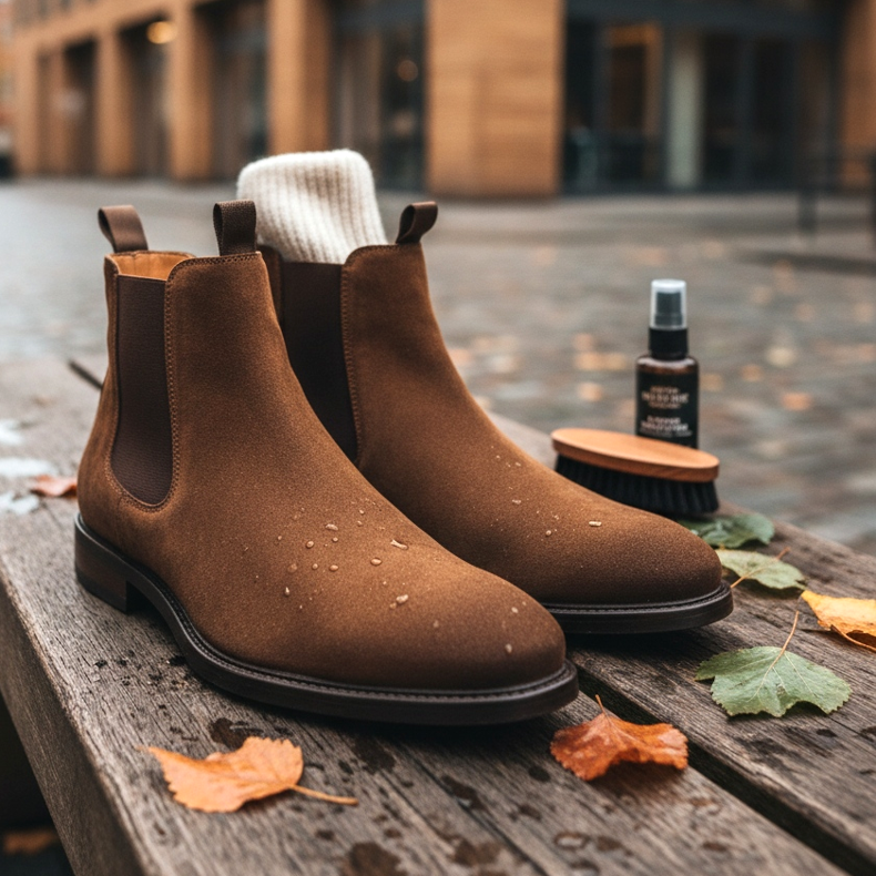 O terceiro par são sapatos para o outono-inverno que combinam elegância com funcionalidade. As botas Chelsea - botas com elásticos nas laterais, sem atacadores - são uma excelente escolha. São rápidos de calçar, têm estilo e protegem os pés nos dias mais frios.