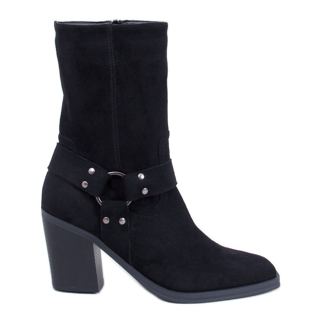 Descubra a elegância e o conforto em um - Suede Cowboy Boots Hardin Black! Essas botas de mulheres únicas são caracterizadas por um corte alto alto e um corte original com ferramentas quadradas que lhes dão um lodo moderno. A fixação do zíper colocada na lateral da parte superior torna a colocação de calçados extremamente fácil e conveniente.