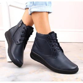Detalhes: Helios W H584C botas isoladas de couro com atacadores e zíper, azul marinho