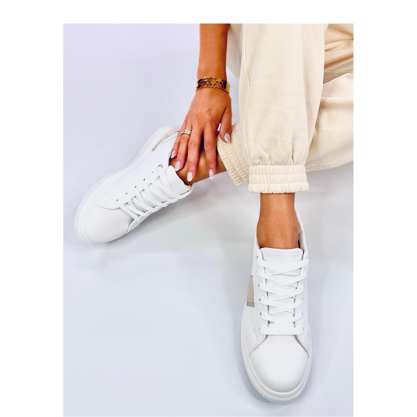 Os tênis na plataforma bege holms de Incello são a escolha perfeita para as mulheres que procuram estilo e conforto. Esses sapatos esportivos exclusivos combinam várias texturas e designs de materiais, o que os torna extremamente eficazes. A cor branca dos tênis combinados com uma inserção de ouro na sola dá a eles um personagem e elegância únicos.